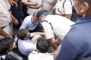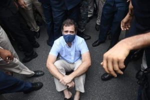 लेकिन पुलिस ने उन्हें विजय चौक पर रोक दिया। इसके बाद इन नेताओं ने वहां धरना दिया और पुलिस राहुल गांधी,
