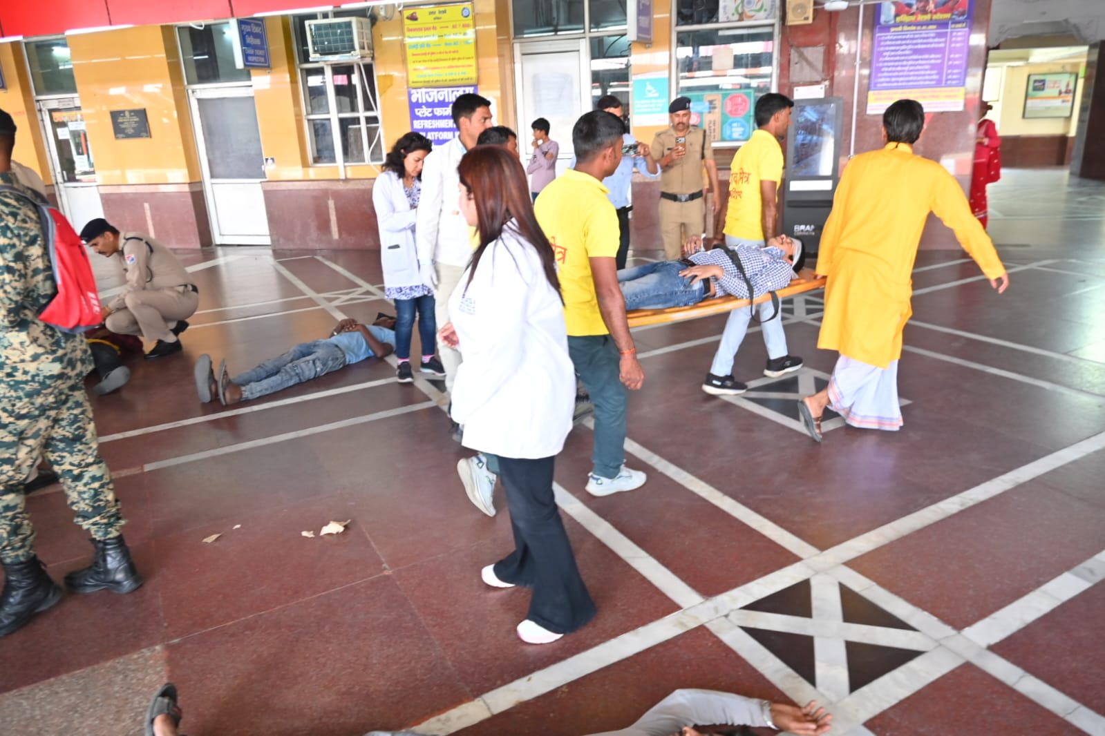 तीसरा परिदृश्य हरिद्वार रेलवे स्टेशन में ट्रेन लेट आने के से स्टेशन पर अचानक श्रद्धालुओं की भीड़ बढ़न के कारण भगदड़ मच गई,जिसमें कई 06 श्रद्धालु घायल हो गए। जिसमें 04 गंभील घायलों को अस्पताल भेजा गया एवं 02 लोगों को रिलीफ सेंटर भेजा गया।